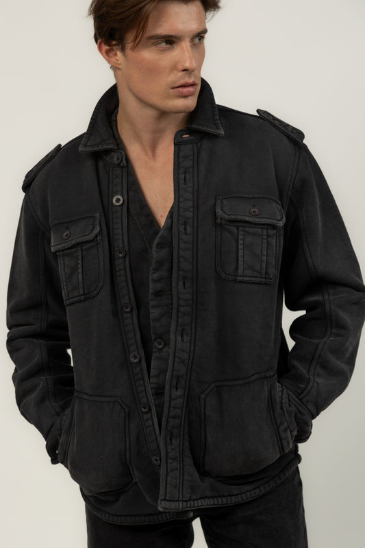 Sherpa-Lined Utility Shacket (Charcoal)